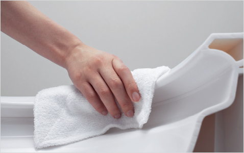 便器のフチを丸ごとなくし、サッとひと拭き、お掃除ラクラクです。