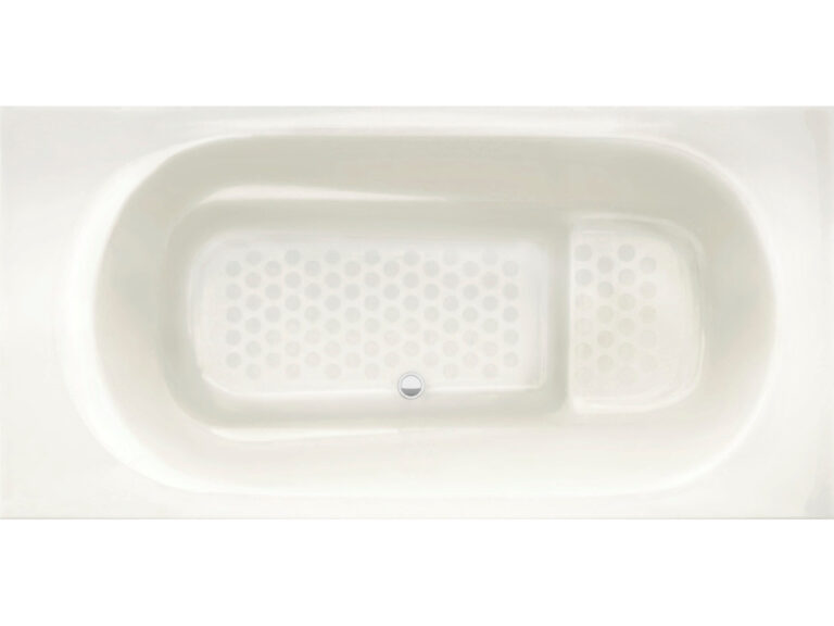 人間工学の研究をもとに身体を支える面を増やし、安定できる形を追求しました。従来の浴槽より関節にかかる力を分散し、入る人をやさしく包み込み支えるため、身体を安心して預けられます。 -