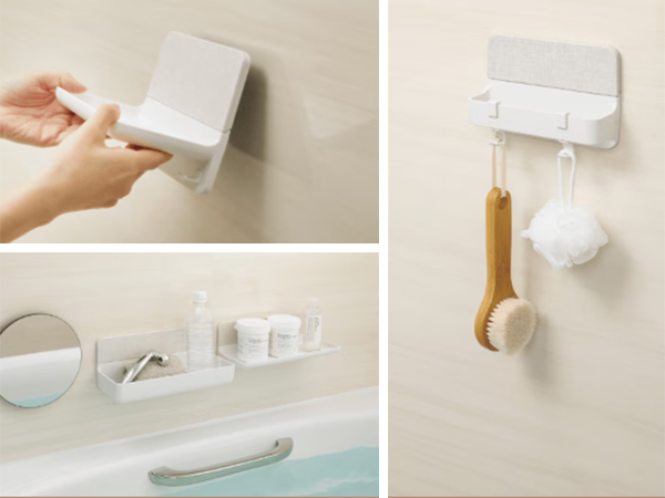 お好みの位置に取り付けられ、カンタンに取り外してまる洗いできるマグネットアイテム。すべて外せば、バスルームをまる洗いできていつも清潔でキレイなバスルームを保つことができます。