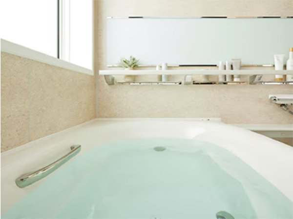 水面がどこまでも続くようなデザインで、心地よい全身入浴を叶えます。